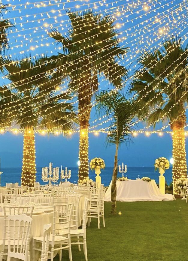Nestled along Calabria’s renowned Costa degli Dei in Briatico, the venue offers a captivating setting where natural beauty meets refined elegance. This exceptional location features a charming reception hall accommodating up to 450 guests, ensuring exclusivity by hosting only one event per day. Couples can exchange vows on the private beach, celebrate in the lush gardens, and enjoy the romantic ambiance of the seaside gazebo.